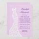 Une jolie robe mariage en dentelle accentue cette invitation à la douche nuptiale sur un arrière - plan mauve et doux. Cette invitation est affichée sur le papier de base; cependant, je recommande le poids et la texture du papier de lin.