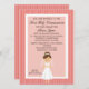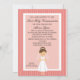Commencez votre fête avec cette adorable invitation à cette petite fille spéciale Première Communion. Elle est recouverte d'une bordure rayée rose foncé et clair. au centre il y a un centre rose clair avec une bordure blanche autour Il y a une adorable fille portant une robe de communion blanche avec un voile. Elle a les cheveux bruns. Consultez les nombreux autres articles de cette ligne tels que les étiquettes, l'affranchissement, les notes de remerciement, et plus encore.