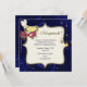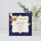 L'invitation élégante de partie de mascarade de Halloween faite à un arrière-plan bleu-foncé, avec des graphiques des parties scintillantes goldtone a affilé le secteur crème décoratif des textes. Des graphiques plus fabuleux des masques décoratifs, des étoiles, et des babioles accrochantes décorent l'avant de l'invitation. Le texte graphique goldtone, au dessus lit simplement la mascarade. Le texte bleu est prêt à personnaliser pour votre événement.