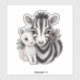 Jolie mama zèbre avec son autocollant bébé, souriante maman zèbre africaine avec des fleurs. Cet autocollant est bon pour toutes les surfaces et durable.