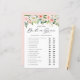 Devine qui l'a dit. Était-ce la mariée ou le marié ? | Ajoutez cette amusante et ludique douche nuptiale He Said She Said carte de jeu à votre événement. Il présente une guirlande florale aquarelle de roses roses et blanches, des pivoines et des dahlias aux accents de verdure. Personnalisez en ajoutant vos questions. Cette carte de jeu à sensations florales de douche nuptiale est parfaite pour les douches nuptiales printanières et les wedding showers.
