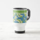 Un joli Travel Mug sans déversement à personnaliser, avec un motif de style Art Nouveau de Lilies-of-the Valley sur un arrière - plan bleu ; de la collection Posh & Painterly 'For the Love of Lilies'.
