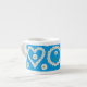 Une jolie petite Mug Espresso, avec une bordure de Cercles de Chaîne de Faisy et Coeurs sur un arrière - plan Sky Blue ; de la collection Posh & Painterly 'Chaîne de Faisée'.