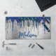 Jolie Parties scintillant bleue moderne Déchets monogramme mat bureau. Ajoutez une touche de parties scintillant et de glamour à votre bureau ou dortoir avec ce tapis de bureau élégant. Pour le rendre plus spécial, il est également monogrammé et personnalisé avec le nom ou les initiales. cliquez sur le lien "customiser plus loin" et utilisez l'outil de conception pour modifier la conception si vous le souhaitez. Montrez votre style personnel, regardez à la mode, branché et sentez élégant autour de vos amis avec un design unique sur votre tapis de bureau ou customisez-le sur un autre produit de votre choix. Un cadeau féminin unique pour les anniversaires, les vacances et toute occasion spéciale. Que ce soit pour le jour des valentines, Noël ou comme cadeau en général, il fait une idée de cadeau formidable pour toute fille qui aime l'élégance brillante moderne. VEUILLEZ NOTER : Il s'agit de graphiques imprimés plats - pas de parties scintillant réelle, de bijoux ou de pièces surélevées.