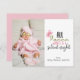 "Tout ce que maman veut, c'est une nuit silencieuse" typographie à droite avec de jolies cloches de Noël roses. Modèle de photo de bébé spa à gauche, mais veuillez insérer votre propre photo pour rendre cela amusant. Ligne de signature(s) modèle sur le devant avec le texte de vœux ou votre propre modèle de texte au dos.