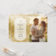 Joli carton de Save the Date avec enveloppe représentant des initiales de mariage avec un effet doré texturé.