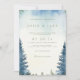 invitez vos invités à votre mariage avec cette carte élégante avec un design de forêt d'aquarelle paisible. Les tons bleu doux et vert sauge créent un ciel rêveur au-dessus d'une bordure de pins peints à la main, encadrant vos détails d'événement dans des polices serif et script classiques. La disposition minimaliste et la palette d'inspiration nature font de cette invitation l'endroit idéal pour des fêtes rustiques, boisées ou en plein air. Un choix raffiné pour les couples à la recherche d'une faire-part sophistiquée et moderne.