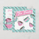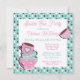 Accrocher des tasses de thé en rose et en aqua à l'avant et empiler des tasses de thé à l'arrière, fait dans un style rétro avec un arrière - plan encadré par un pois de polka. Parfait pour une douche nuptiale, une soirée bachelorette, une fête d'anniversaire ou un afternoon tea. Illustration tirée à la main par McBooboo.