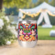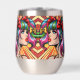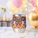 Jolie fille de style comique pop art coloré avec des cochons et des arcs dans ses cheveux.