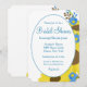 Présentant une illustration de tournesol bleu et jaune, ces invitations de douche nuptiale présentent un beau texte bleu dans un cadre circulaire bleu et blanc. Utilisez les modèles pour une personnaliser facile. Commandez dès aujourd'hui vos invitations de douches nuptiales ! Conception de l'invitation : WeddingsbyRhoadie Oeuvres d'art florales : AMBillustrations http://www.etsy.com/shop/AMBillustrations/