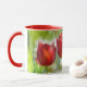 Mon oeuvre d'art numérique originale avec ma photo originale de trois fleurs de tulipe rouge, dans un jardin, est sur cette jolie tasse à muscade florale. L'image a été traitée avec un effet imaginaire aquarelle pour un aspect illustré et fantaisiste. L'intérieur de la tasse et de la poignée sont un ton rouge pour compléter l'oeuvre d'art. Ce sont des tasses de 11 onces, juste la taille idéale pour votre café ou thé maison - ou même du chocolat chaud! Il ferait un grand cadeau et vous pouvez mettre des paquets de café, des sachets de thé ou du chocolat chaud à l'intérieur. Une autre idée de cadeau est de mettre un petit plante dedans pour le rendre spécial pour votre être cher. Il ferait aussi un joli cadeau de la Fête des Mères.