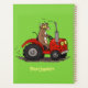 Cette drôle de vache brune conduit un tracteur rouge. Beaucoup de plaisir pour les fermiers ou les amateurs de vache!