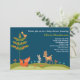 Adorable invitation qui est parfait pour les fêtes et baby showers à thème forestier. Présente le renard, le cerf et le lapin sur un arrière - plan bleu profond.