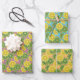Un ensemble de 3 feuilles de papier d'emballage plat avec un joli motif en tranches et en quarts de citrons et de citrons. © ArianeC Illustrations-Tous droits réservés