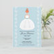 Customisez et personnalisez cette invitation assez nuptiale de douche avec un arrière - plan texturisé bleu-clair et une jolie, rousse jeune mariée dans une robe de mariage sans bretelles avec une ceinture bleue et un joli motif de flourish sur sa jupe. Elle porte une fleur dans ses cheveux et accessoirise avec une belle paire de baisse de larme formée balancent des boucles d'oreille. Cliquez sur dessus le lien suivant pour voir tout notre © original Chrissy H. Studios, LLC de Chrissy H. Illustration