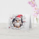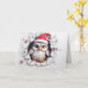 Donnez à votre carte de vœux de Noël une touche de la vie sauvage avec ce portrait d'animaux de Noël mignon mettant en vedette un hibou de Noël mignon dans un chapeau de Père Noël sur le devant, un fond de flocons de neige bleus à l'intérieur et un doux vœu "Joyeux Noël" dans une police enneigée à l'intérieur. Carte de vœux parfaite pour les amoureux des animaux et de la faune ! Uniquement chez Yips N' Howls.