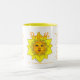 Tasse de café à deux tons jaune décorée de la conception "de jonquille ensoleillée". Le poème "jonquilles" par Wordsworth est imprimé de chaque côté de la conception.
