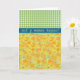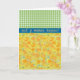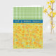 Une jolie Carte de Voeux à personnaliser pour la Fête des Mères, avec un motif de jonquilles d'or, d'une aquarelle peinte à la main par Judy Adamson, en équipe avec un chèque vert coordonné en vichy motif.