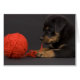 rottweiler chiot de 1,5 mois joue avec la balle de fil rouge