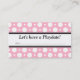 Personnalisés pour votre famille, ces Cartes de visite à deux côtés sont conçus avec un motif à pois assortis avec des tailles alternées de cercles blancs sur un rose style café. Sur le côté avant, on peut lire "Ayons une date de jeu !" et un endroit pour écrire une date arrangée à la main, et sur le côté arrière, les noms, coordonnées et adresses de vos autres enfants sont imprimés en noir sur blanc.