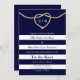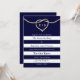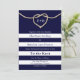 Une corde à voile attachée dans un coeur décore ce faire-part de mariage sur un arrière - plan de la marine, ce qui en fait un endroit parfait pour le mariage nautique ou balnéaire. Faites défiler vers le bas pour voir le reste de la collection de mariages, et si des articles supplémentaires sont nécessaires, contactez-nous à prettyfancyinvites@gmail.com avec votre demande
