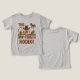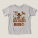 Ce t-shirt western pour tout-petits comporte le texte "Ce n'est pas mon premier rodéo" avec un casquette minuscule, des bottes et du lasso, ainsi que des détails rustiques amusants comme un cactus, un cheval et une clôture en bois. Parfait pour les deuxièmes anniversaires.