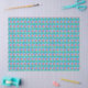 Papier de soie avec une illustration amusante sur le thème de la plage ou de la piscine avec une balle de plage rouge, un parasol vert, des sandales de vacances et de l'huile solaire sur un fond bleu ondulé.