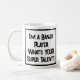 Drôle slogan sur une tasse de café qui dit "Je suis un joueur de banjo. Quel est VOTRE super talent ?" Café Mug pour un joueur de banjo ou quelqu'un qui joue du banjo. Texte en gras noir et blanc.