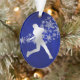 Ce joli ornement de vacances fera un merveilleux cadeau de gardien pour tous ceux qui aiment le baseball! Il dispose d'une pâte silhouette argentée en pleine balançoire contre un jet de flocons d'argent. Tout est placé sur un arrière - plan bleu vif. L'arrière de l'ornement a le même spray de flocon argenté avec votre texte personnalisé au-dessus et au-dessous.