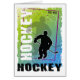 Silhouette du joueur de hockey sur arrière - plan abstrait bleu et vert. Le mot hockey est à la hausse.