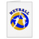 l'illustration d'un joueur de net-ball sautant et rebondissant pour la boule a placé le cercle et les mots intérieurs "net-ball"