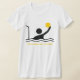 Joueur de water-polo t-shirt silhouette noire. Il affiche une icône pictogramme minimaliste d'une silhouette noire d'un joueur de ballon de water-polo tenant son ballon devant le but et votre texte sur fond blanc.