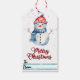 Joueuse étiquette cadeau bonhomme de neige pour No