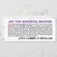 Carte en rack promotionnelle pour JOY THE IMMORTAL BELOVED : Avec l'anachronisme et la personnification de "Joy" en tant que belle femme dans un concours de beauté moderne, JOY THE IMMORTAL BELOVED est un triptyque en trois parties comprenant JOY, INSPIRES et MUSIC qui représente des clichés de Ludwig van Beethoven puisant son inspiration dans sa composition son célèbre "Ode to Joy". Tout comme l’attrait universel d’une femme magnifique, la beauté de la Neuvième Symphonie de Beethoven est largement appréciée par de nombreux publics variés. Placer le compositeur hors contexte dans notre monde pop centré sur la culture sert de métaphore à la popularité et au statut de rockstar de Beethoven, tandis que la fusion d’éléments high brow et low brow illustre que la musique classique n’est pas seulement pour les snobs élitistes. Tout cela est réalisé tout en jouant sur le mystère qui entoure le soi-disant bien-aimé immortel de Beethoven.