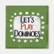 "Let's Play Dominoes" est un design de texte mignon avec une forme d'accent blanc entourée de points blancs texturés.
