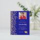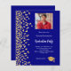 Une invitation moderne et élégante à Graduation Party. Un arrière - plan bleu marine décoré de faux confettis dorés. Personnalisez et ajoutez une photo, un nom et des détails de la fête. Texte blanc. 1 feuille = 1 invite imprimé bord à bord.