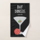 Martini thème pickleball "Dinkers de jour" Nom d'équipe serviette à main pour une équipe de pickleball, club, ou le prix de tournoi d'échelle dispose d'un arrière - plan noir avec un verre à martini et accents de pickleball dans un design rétro unique et amusant avec texte de nom modifiable et couleurs arrière - plans.
