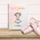 Une jolie ballerine sur la couverture de ce carnet rose ravira une fille qui aime le ballet. Le carnet est pour une jeune danseuse de rendre compte de ses progrès et peut être personnalisée avec leur nom.