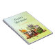 Cahier relié en spirale pour le jardin d'herbes aromatiques. Un étagère de pots contenant des herbes, des baies et des fleurs est le design. Personnalisez le texte amusant et manuscrit en haut. Des bandes verticales bleu clair et vert constituent l'arrière-plan. Une petite bordure en volutes sépare le texte des pots d'herbes. Les pages lignées peuvent contenir des informations sur la plantation, la croissance et la récolte, ainsi que des remèdes et des thés à base de plantes aromatiques faits maison.