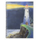 Ce journal présente un phare debout et fort sur la côte océanique protégeant les navires et un petit chien regardant vers le haut dans la nuit. L'illustration est tirée d'une anthologie de poésie, "Friends and Anemones : Ocean Poems for Children", publiée par The Writers’ Loft, Sherborn, MA.