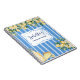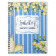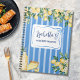 Organisez vos recettes avec notre Journal de recettes aux fruits de citron jaune et rayures bleues. Caractérisé par une illustration aquarelle de citron d'été avec des détails esthétiques féminins, convient comme cadeau de demoiselle d'honneur ou livre de cuisine de famille.