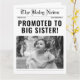 Faites de votre faire-part de grossesse de grande soeur un événement amusant et mémorable! Notre carte "Promoted to big sister" vous permet de présenter des photos et de partager l'actualité de manière unique. Avec des modèles personnalisables, vous pouvez ajouter votre touche personnelle au faire-part. Partagez la joie en famille et entre amis avec ce faire-part amusant et créatif. Achetez maintenant et commencez à créer votre propre faire-part de grossesse de grand frère unique et personnalisée.