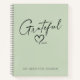 Attirez cette énergie positive avec un carnet personnalisé "Journal de la gratitude", avec une coutume unique - design minimaliste moderne avec "Grateful" dans élégant script manuscrit manuscrit, un beau coeur de style calligraphie et votre nom personnalisé. En vert sauge clair, noir et gris ou éditer facilement la couleur primaire comme vous le souhaitez. Un grand cadeau pour vous et peut-être quelqu'un d'autre.