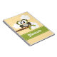 Personnalisez cette couverture faite sur commande mignonne et élégante de carnet de notes à spirale de hibou avec votre nom sur la conception de ruban de point de contraste de vert de chaux. Un hibou observé large adorable se repose été perché sur une branche feuillue sur un nuage pelucheux et un fond jaune de ciel de Polk-un-point. Ce carnet à spirale doux et girly peut être utilisé comme journal ou journal intime aussi, et il est également grand pour l'usage de siège social ou de fournitures scolaires. L'illustration sur le journal en spirale personnalisé et fait sur commande de ceci est © Chrissy H. Studios, LLC. Tous droits réservés.