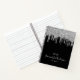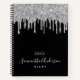 Un arrière - plan noir chic avec des gouttes de parties scintillant en faux argent tendance, la peinture goutte à goutte. Personnalisez et ajoutez une année, un nom et un titre. Le nom est écrit avec un script de style moderne écrit à la main avec des swashes. Pour que les swashes ne suppriment que le nom de l'échantillon, laissez les espaces ou émoticônes devant et après le nom. Texte blanc. Utilisez-le comme journal, en prenant des notes, pour l'école, le travail, le bureau à domicile.