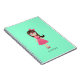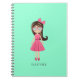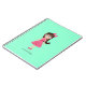 La fille à la mode mignonne de brune de caractéristiques de journal d'écriture en verres portant une robe rose avec les chaussures assorties et les cheveux cintrent, placent sur un fond bleu-clair. Le texte peut être édité ou enlevé + Personnaliser pour choisir différentes polices et couleurs !