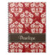 Cette couverture élégante de rouge, crème et brun chocolat de damassé de carnet de notes à spirale peut être personnalisée avec votre nom sur la conception piquée de ruban. Ce carnet fait sur commande avec un baroque rencontre des sembler français de style campagnard sophistiqués, luxueux et classieux. Employez-le comme journal, journal intime ou pour la conservation générale de note. Grand pour des approvisionnements de siège social ou de nouveau à l'utilisation d'école. © Chrissy H. Studios, LLC d'illustration. Tous droits réservés.