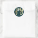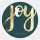 L'autocollant de Noël en or et en vert personnalisé présente un faux script de joie en or sur un bel arrière - plan vert.