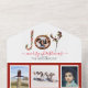 La carte, l'enveloppe et le collage photo parfait pour se terminer chaque année. Personnalisez tout le texte pour toutes les occasions de vacances, de Noël à Festivus ! Ajoutez vos photos préférées de l'année, et incluez votre dernier portrait de famille en bas - il est détachable - le souvenir parfait pour vos amis et votre famille à profiter toute l'année. Le tout sur un arrière - plan rouge et blanc avec le mot JOY écrit dans les articles de Noël. Ajoutez votre photo de famille à l'ornement de Noël au milieu du mot JOY.