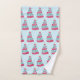Serviette sertie avec une illustration ludique et fantaisiste. Design typographique en forme d'arbre de Noël avec quelques ornements de noël et une étoile au-dessus. A l'intérieur sont les mots : Joie au monde.